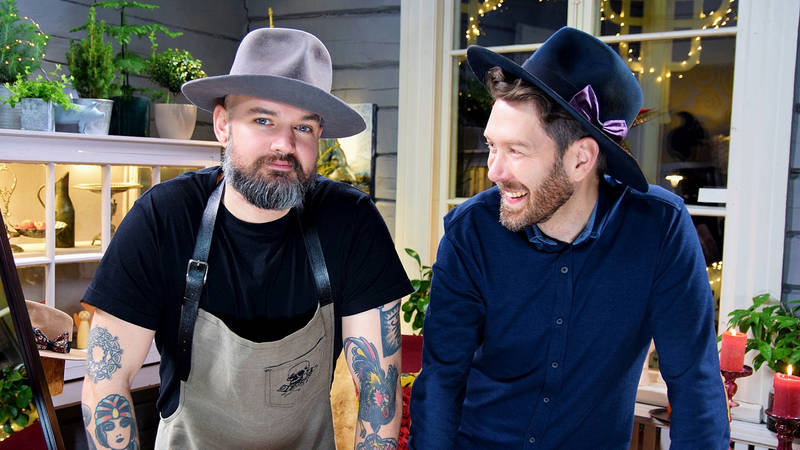Frank A Unger är självlärd hattmakare. Tillsammans med programledaren Jonas Sundström gör han en fedorahatt. Lee tar fram nål och tråd och broderar små enkla julklappar, Camilla gör en julskylt inspirerad av amerikanskt 50-tal och i köket gör Anders en inbakad paté till julbordet. Inspiration för hus och hem, fritid och vardagsliv. Del 16 av 17. (Finland, 2019)